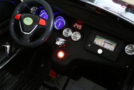 Электромобиль оснащен пультом управления, МПЗ, регулятором громкости и индикатором батареи.