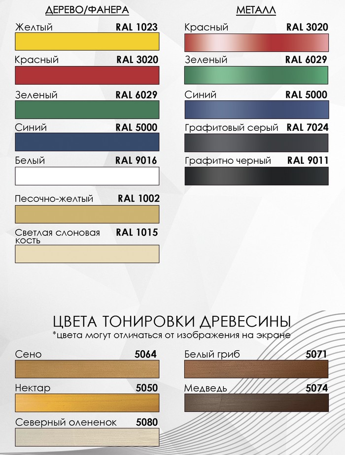 Возможно изготовление оборудования без удорожания в следующих цветах по таблице: