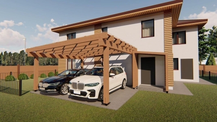Навес из дерева послужит отличным парковочным местом для одного или нескольких автомобилей.