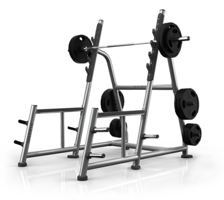 MATRIX MAGNUM A81 - ультрапрофессиональная рама для приседов. Конструкция из мощного профиля выдерживает работу с самыми тяжелыми весами. Рама окрашена в два слоя и покрыта лаком. В стандартном варианте тренажер снабжен 4-мя держателями для штанги и 10 держателями для хранения дисков. Держатели для штанги на боковых стойках выполнены из формированного уретана.