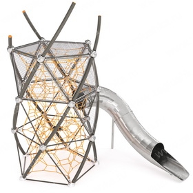 Горка тоннельная металлическая. Изготовлена из нержавеющей стали марки AISI 304 толщиной 2 мм. Имеет поворот в правую сторону. Диаметр тоннеля — 765 мм. Высота стартового участка — 3000 мм. Изделие устойчиво к коррозии и перепадам температур.