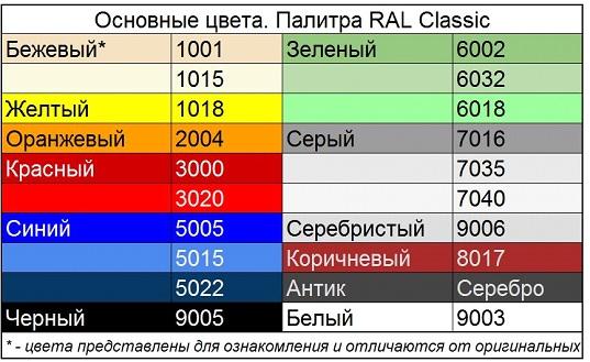 Цвет любой на выбор по таблице RAL.