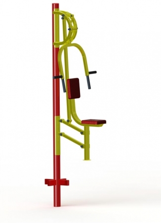 Конструкция предназначена для выполнения жима сидя вперед. Имеется две пары рукояток для разного хвата, и разного стартового положения, в