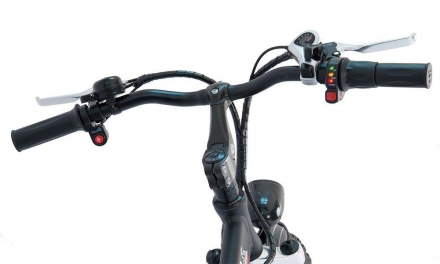 ✔ Информация об уровне заряда батареи выводится на светодиодный индикатор, расположенный на руле велогибрида с правой стороны.