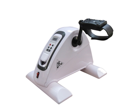 Широкие педали с регулируемыми ремешками крутятся за счет электродвигателя и заставляют двигаться руки и ноги с разной нагрузкой.