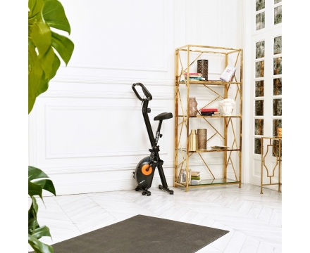 Максимальный вес пользователя, который может использовать этот велотренажер, составляет 100 кг. Он легко складывается и экономит место в вашей квартире. Высота сиденья может быть отрегулирована на 5 уровней, что позволяет настроить велотренажер на ваш рост. Передняя опорная стойка имеет 2 транспортировочных колеса для удобства перемещения.